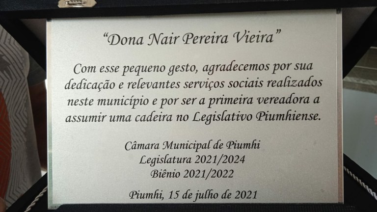 2021 - Dona Nair - Primeira vereadora